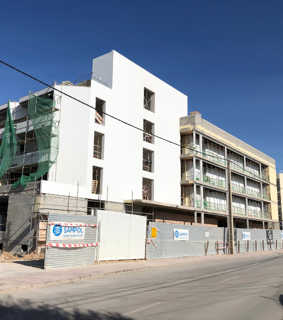 Así, desde el Grupo Antonio Afonso, nos encargamos de trabajar la reforma de la fachada del Can Salia. Para ello, y empleando el Panel Nervado de GlassyDur®, creamos un cerramiento con acabado grecado en blanco, así como diferentes balcones y terrazas.
